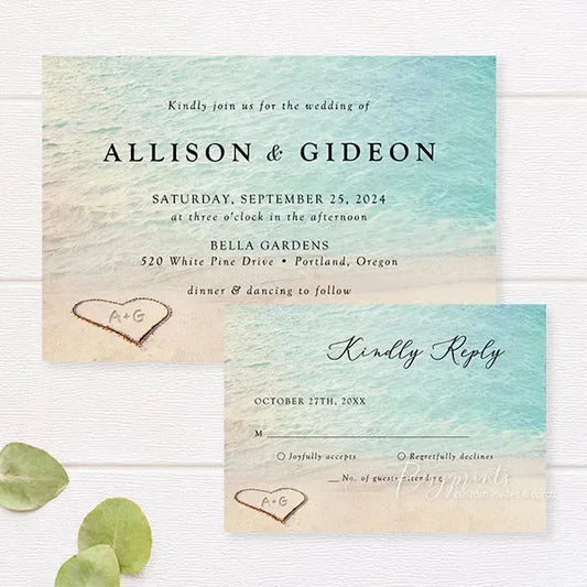 heart sand beach wedding invitations RPFLAT14