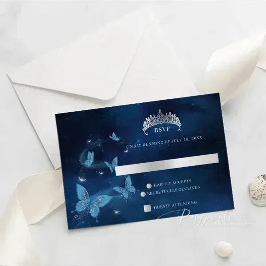 Royal blue butterfly acrylic quinceanera invitations ROSYA58