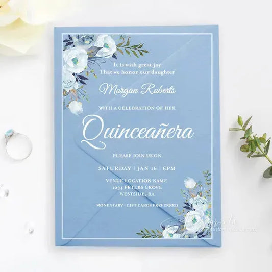 Looking to celebrate a milestone birthday? Order quinceanera, sweet 16, or 1st birthday invitations from Rosy Prints that perfectly capture the essence of your special day. Custom elegant birthday invitations are designed to reflect the unique theme and personality of the celebration, ensuring that your guests feel the excitement and anticipation. Whether it's a vibrant quinceanera fiesta, a glamorous sweet 16 bash, or a delightful first birthday party, choosing the unique invitations sets the tone for an unforgettable event. Make your invitation selection today and start the countdown to your celebration!