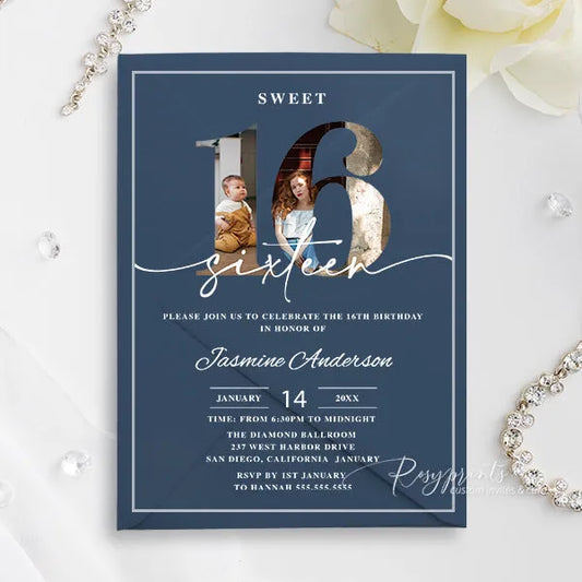 Looking to celebrate a milestone birthday? Order quinceanera, sweet 16, or 1st birthday invitations from Rosy Prints that perfectly capture the essence of your special day. Custom elegant birthday invitations are designed to reflect the unique theme and personality of the celebration, ensuring that your guests feel the excitement and anticipation. Whether it's a vibrant quinceanera fiesta, a glamorous sweet 16 bash, or a delightful first birthday party, choosing the unique invitations sets the tone for an unforgettable event. Make your invitation selection today and start the countdown to your celebration!