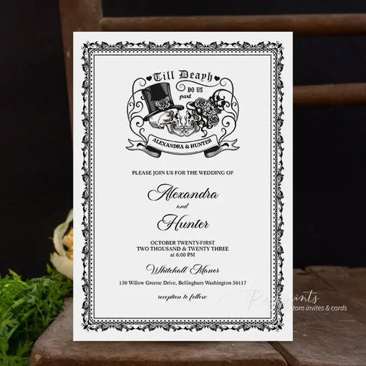 Halloween black skeleton gothic wedding invitations RPS42
