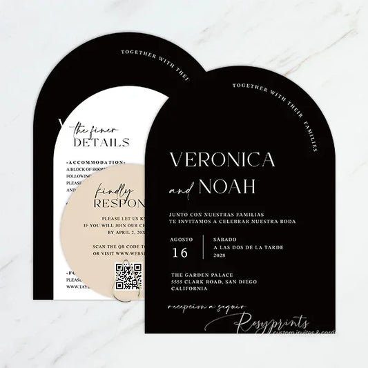 simple and elegant black and white arched wedding invitations RPS58