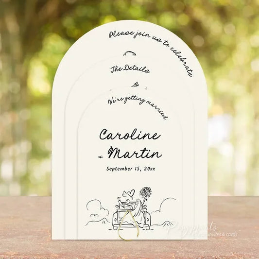 Whimsical Hand Drawn Arch Wedding Invitations Unique Funky RPS50