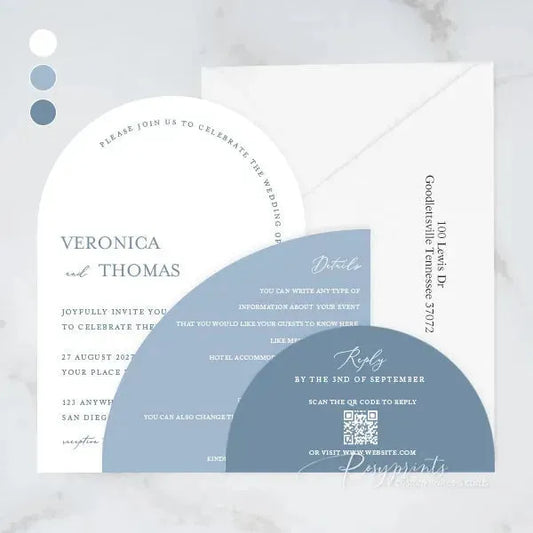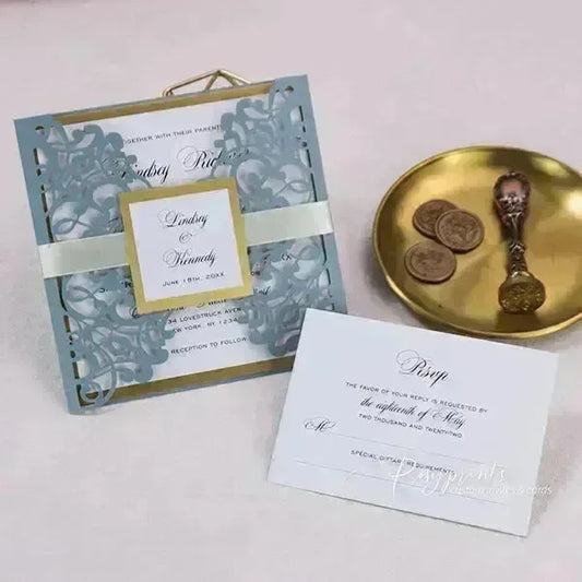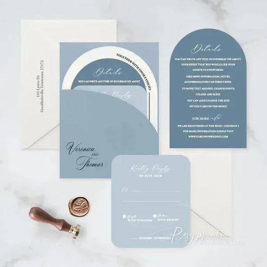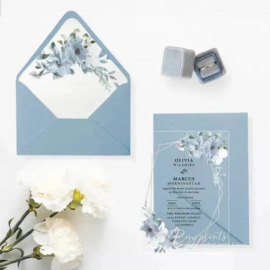 dusty blue and beige acrylic wedding invitations ROSYA34
