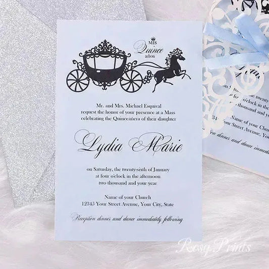 blue and silver Cinderella Quinceanera invitations ROSG09