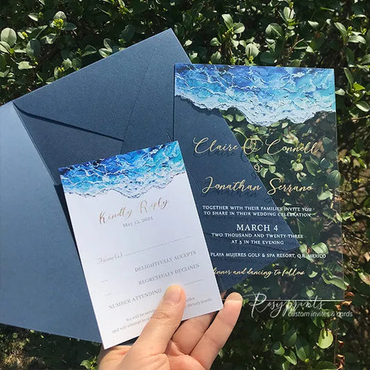 beach ocean wave clear acrylic wedding invitations ROSYA09