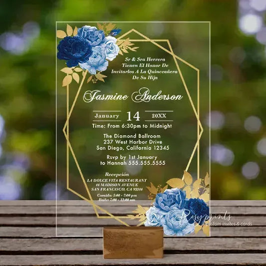 royal blue floral quinceanera acrylic invitations ROSYA33