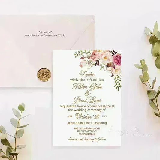 boho dusty rose flower acrylic wedding invitations ROSYA04