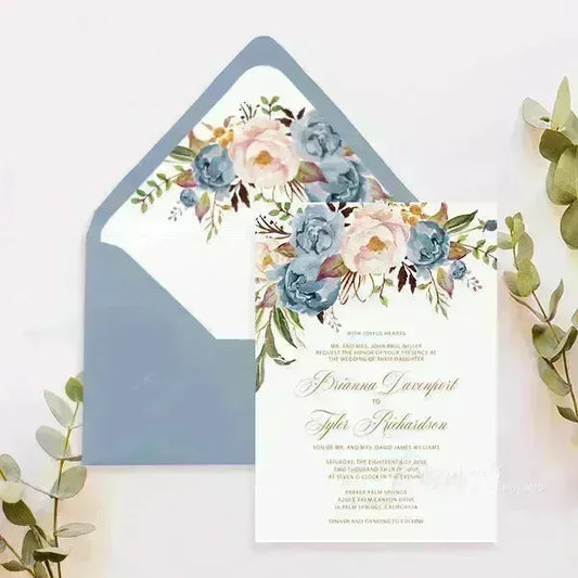If you're looking for the perfect blue wedding invitations, consider buying dusty blue invitations from Rosy Prints. This elegant dusty blue wedding invitations can beautifully complement various themes, whether rustic or modern. With numerous customization options available, you can easily find or create an invitation that matches your personal style and wedding aesthetic.