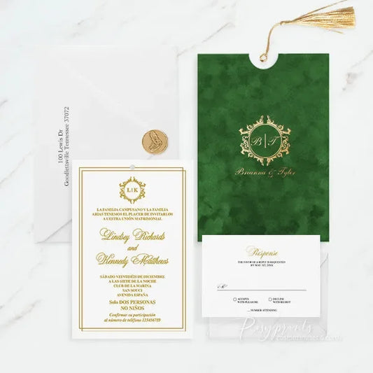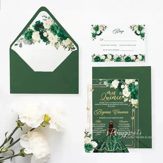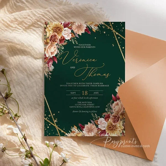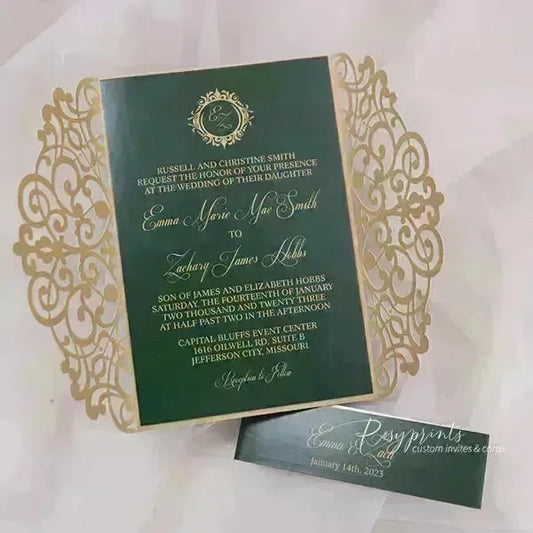 Emerald green wedding invitations offer a rich, elegant touch that can beautifully set the tone for your special day. Their deep, vibrant hue evokes feelings of luxury and sophistication, making it a perfect choice for a classic or modern wedding. With a variety of designs available, from floral patterns to minimalist styles, you can find the ideal emerald green invitation to match your wedding theme. Elevate your celebration and impress your guests with these stunning invites that reflect your unique vision.
