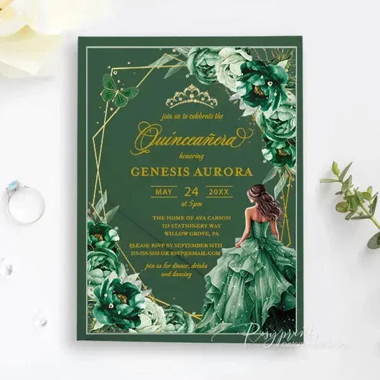 enchanted forest emerald green Quinceanera invitations ROSYG10