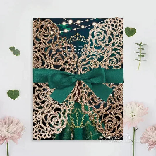 emerald green and gold acrylic quinceanera invitations ROSYA38