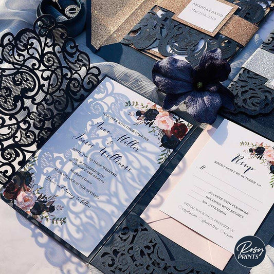 Buy Floral wedding invitations from Rosy Prints are a beautiful choice for couples looking to incorporate nature's elegance into their special day. These flower wedding invitations capture the essence of romance and freshness with their watercolor floral designs. Whether you're drawn to soft pastels or vibrant jewel tone, there's a floral option to suit every wedding theme. Consider purchasing floral wedding cards that reflect your personal style and the season of your wedding, ensuring that your guests are captivated from the moment they receive their invitation.