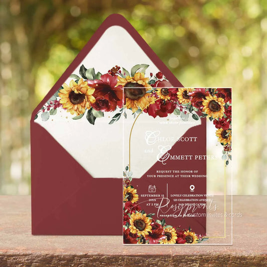 red roses and sunflower rustic acrylic wedding invitations ROSYA120