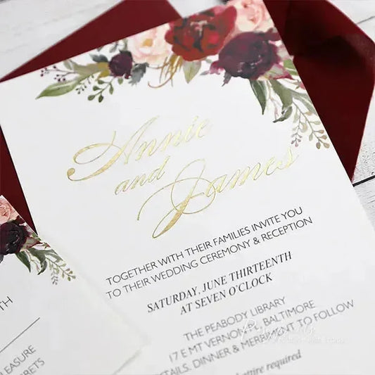 deckled edge gold foil letterpress wedding invitations ROSYL02