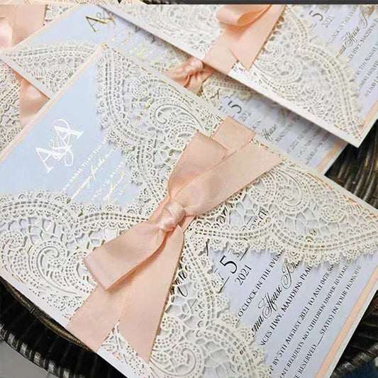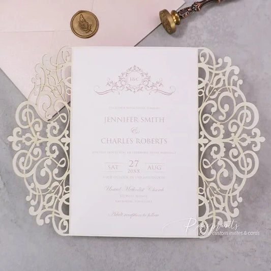 boho peach coral gold foil laser cut wedding invitations ROSYG40