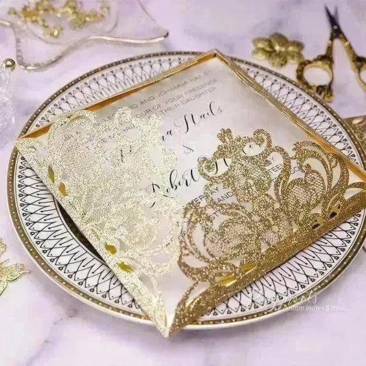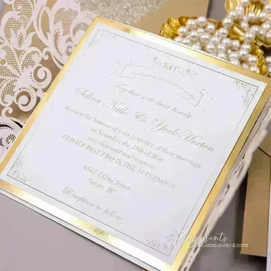 luxurious gold foil elegant die cut wedding invitations ROSYP42