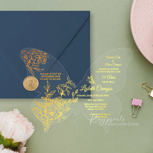 Gold foil butterfly shaped acrylic birthday invitations ROSYA115
