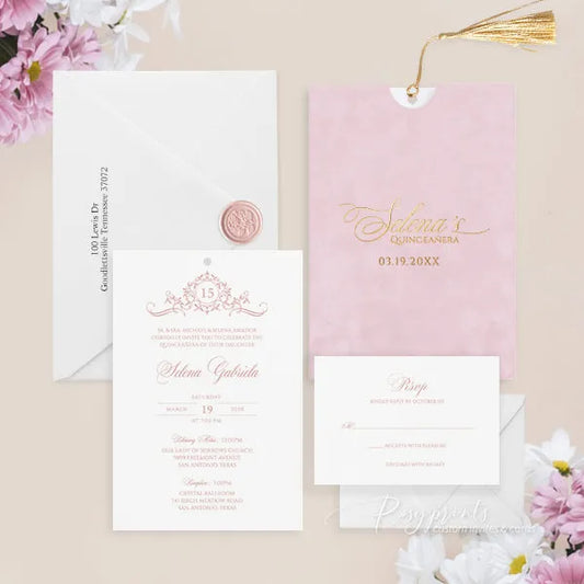 rose pink quinceanera invitations with foil velvet ROSYP56