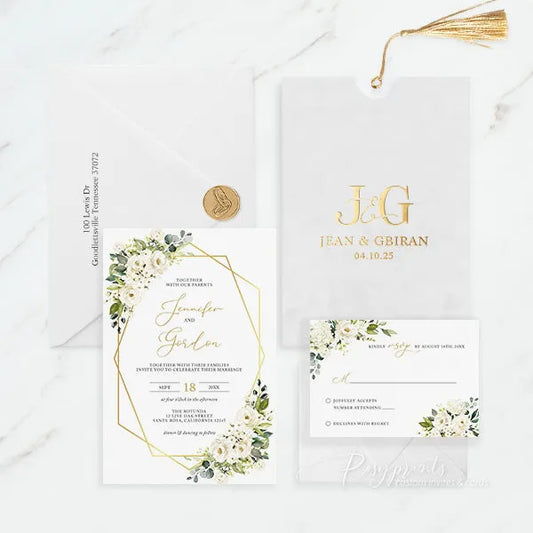 ivory flowers gold foil velvet wedding invitations ROSYP53