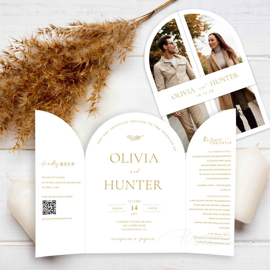 all in one gatefold arch wedding invitations with pictures ROSG38