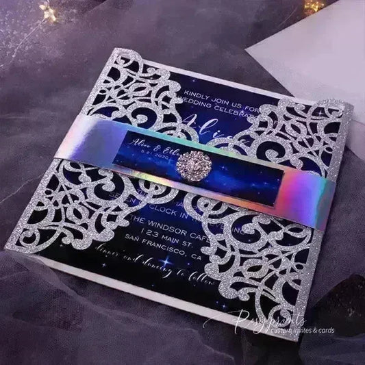 galaxy blue starry night celestial wedding invitations ROSYG19