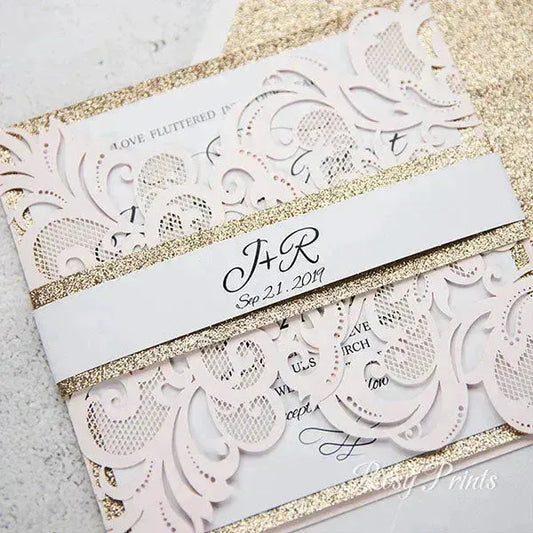 modern black and gold glitter pocket wedding invitations ROSYP13