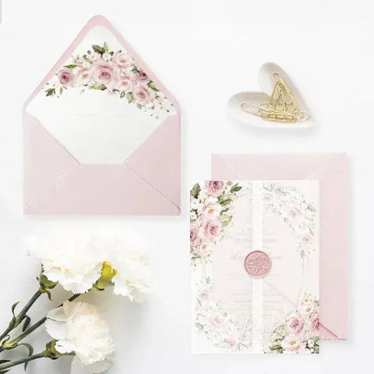 dusty rose pink floral vellum wedding invitations ROSYV04