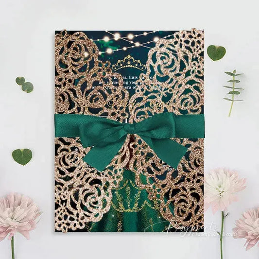 enchanted forest emerald green Quinceanera invitations ROSYG10