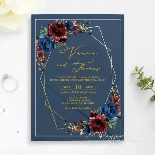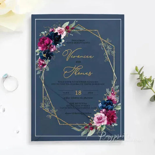 navy burgundy floral acrylic wedding invitations ROSYA32