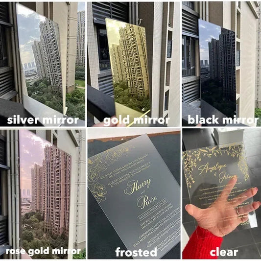 modern elegant gold mirror acrylic wedding invitations RPMA01