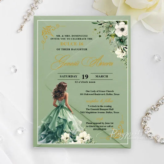 emerald green and gold acrylic quinceanera invitations ROSYA38