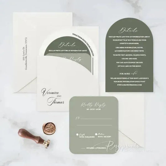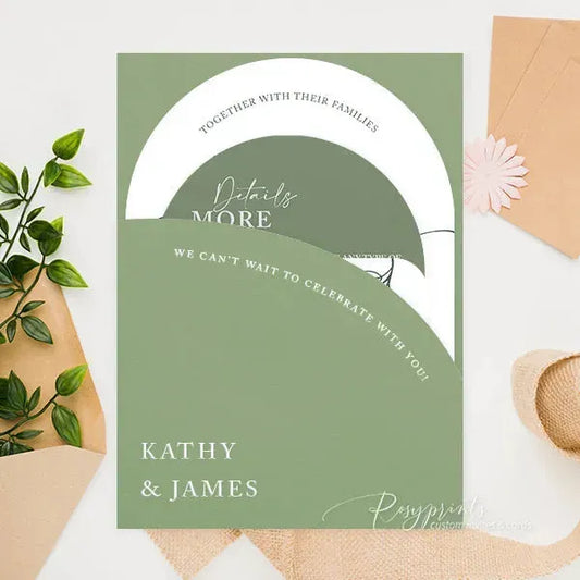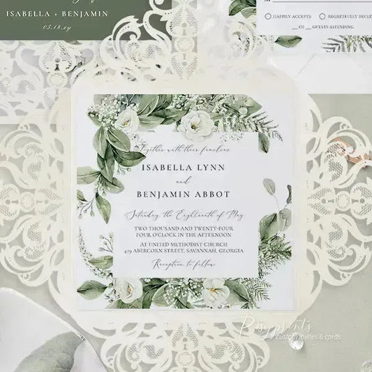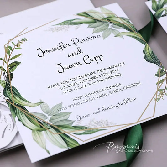 rustic sage green leaves laser cut wedding invitations ROSYP06
