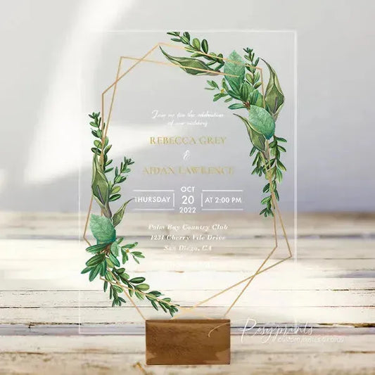 eucalyptus sage green acrylic wedding invitations ROSYA23