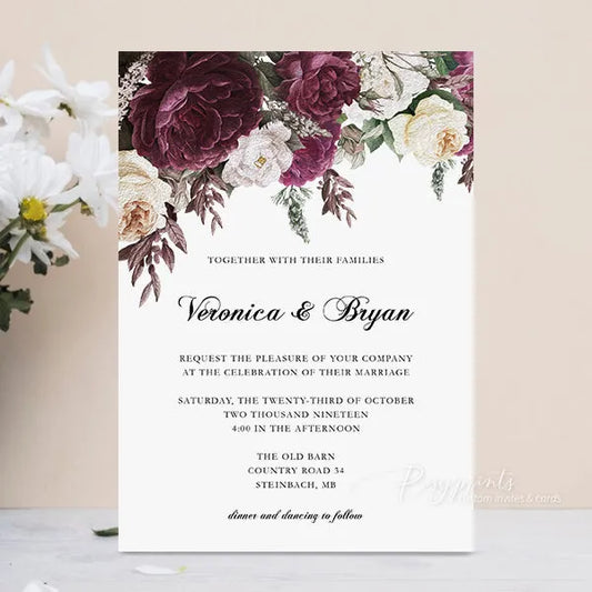 Dark Plum Purple Ivory Floral Wedding Invitations RPS40-B