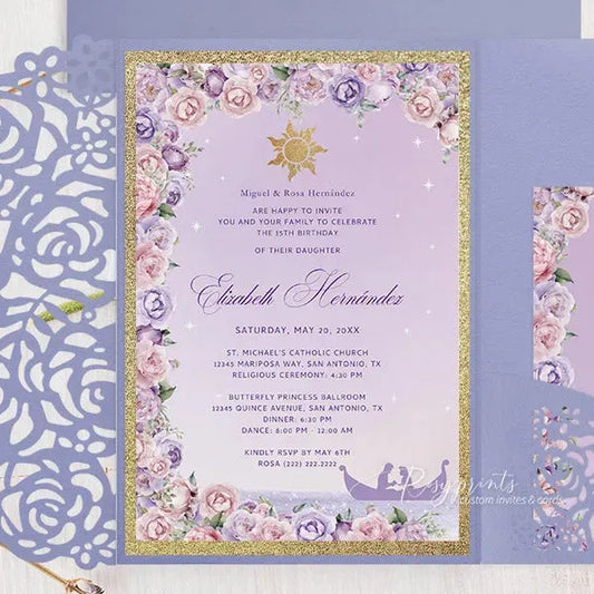 purple tangled rapunzel quinceanera invitations ROSYP34