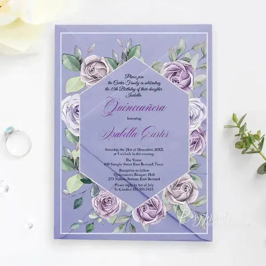 lavender purple acrylic quinceanera invitations ROSYA60