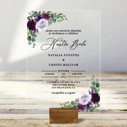 plum purple flowers acrylic wedding invitations ROSYA44