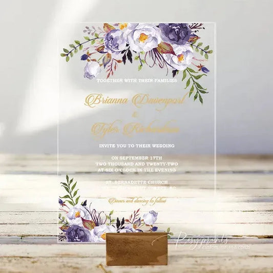 shades of purple floral acrylic wedding invitations ROSYA18