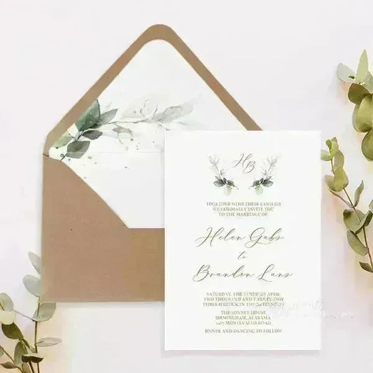 rustic sage green leaves laser cut wedding invitations ROSYP06