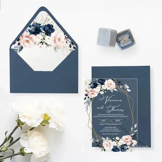 navy burgundy floral acrylic wedding invitations ROSYA32