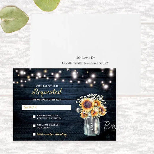 rustic light blue and yellow sunflower wedding invitations ROSYP44