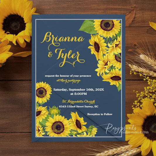 navy blue and sunflower acrylic wedding invitations ROSYA75