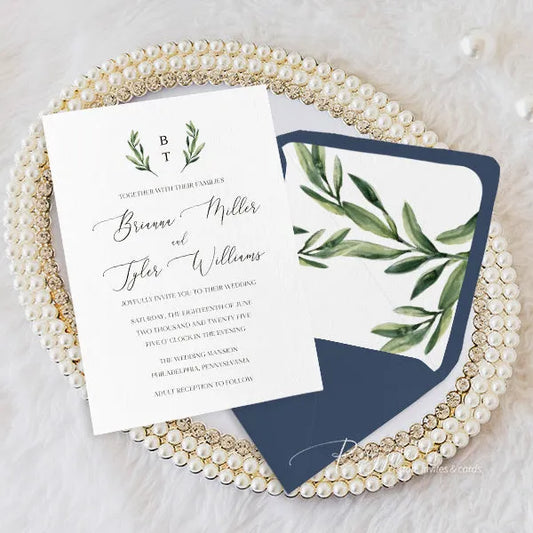 simple olive green branch wedding invitations with vellum jacket RPV16