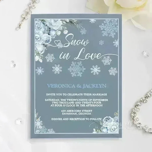 winter ice blue snowflake acrylic wedding invitations ROSYA45