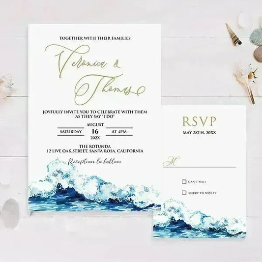 Minimal ocean blue beach wedding invitations RPS27